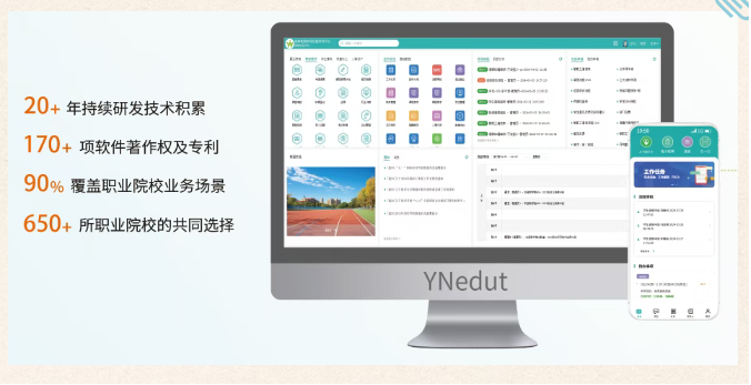 功能全面:历经20余年持续不断的迭代与优化,依能智慧校园平台已能支撑学校近90%的业务场景需求,一套系统即可满足学校绝大部分的数字化管理需求。