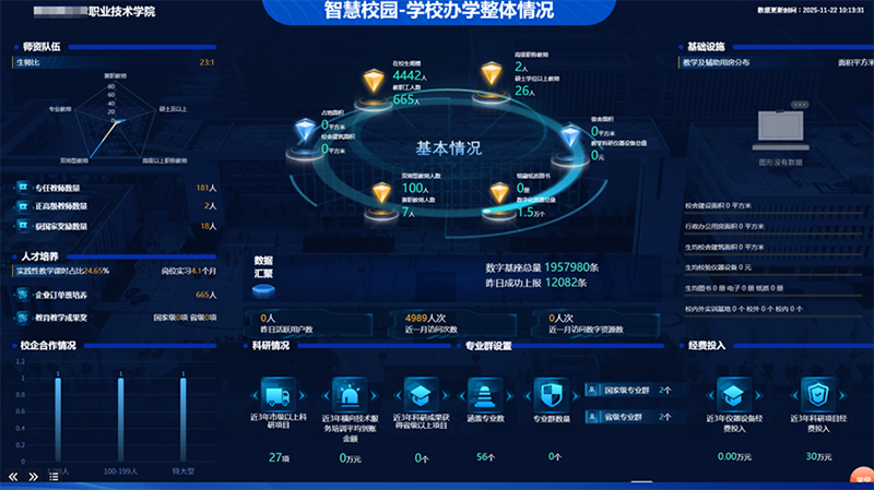数据是教育数字化的核心资产,而数据价值的实现,不仅在于 “数据互通”,更在于 “数据可用”。V11版本依托 “业务+数据” 双中台的天然整合优势,彻底打破信息孤岛,实现了 “数据主动找人”的全新体验,颠覆了传统数据 “被动查询” 的模式。通过手机看板、大屏驾驶舱等载体,精准推送管理者关心的核心数据,让校领导、学工处长、辅导员、宿管员等不同角色均可实时获取专属信息;同时构建全生命周期数据治理与安全体系,符合上级部门的数据分类分级标准,保障数据安全合规。随着数据资产的积累,结合 AI 应用功能,数据将真正成为院校办学决策、业务改进的核心支撑。
